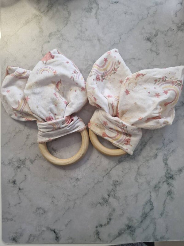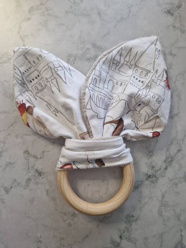 Anneau : Bois naturel, sans vernis ni produits chimiques, parfait pour les poussées dentaires.